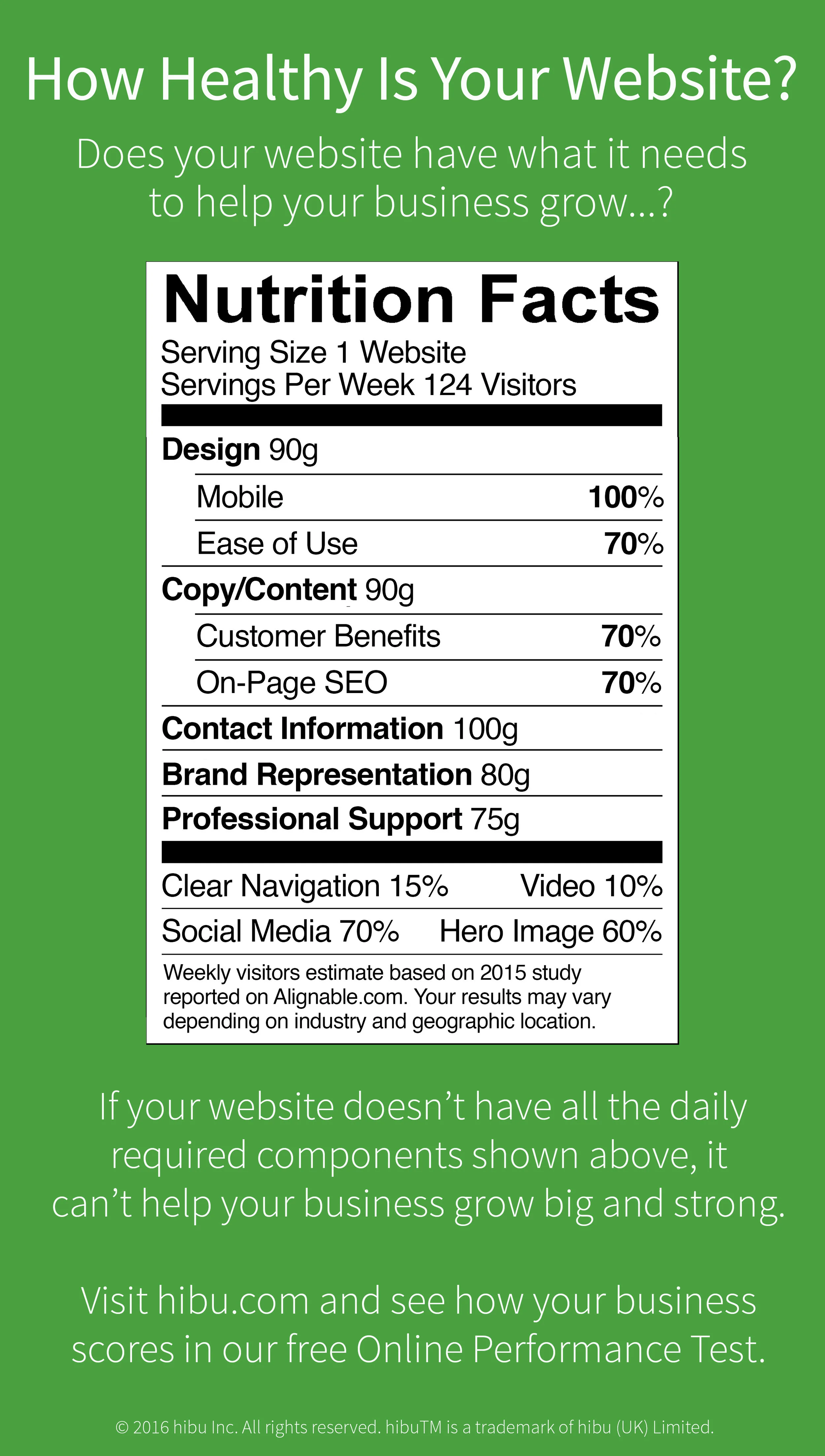 When your website serves up your business to customers and prospects searching for what you offer, there are certain things that absolutely must be baked into your site. Take a quick look at our Website Nutritional Facts and see if your website is healthy — is it nutritional or junk?